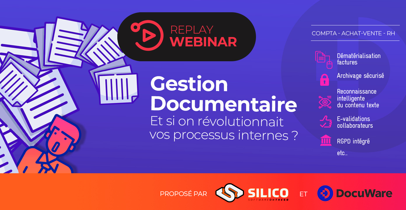 Ce Webinar vous est offert par Emilie Buffin de la société SILICO avec l’intervention de Grégory HEROLD, Directeur régional Sud-Est et Suisse Francophone de la société DocuWare.